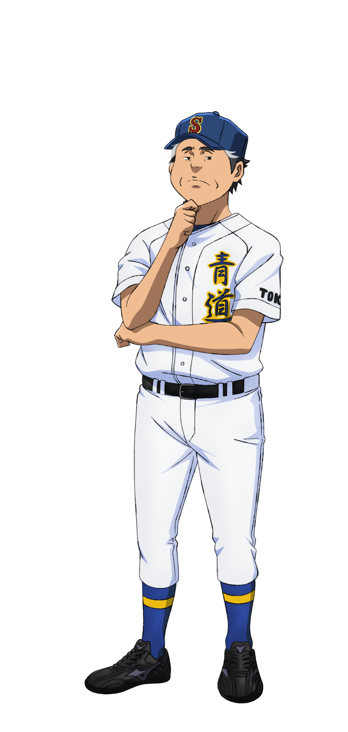 Toshihiko Tahara is the head coach of Ichidai Third High School’s baseball team. A firm believer in playing fundamental baseball, he has great confidence in his players and tends not to give overly detailed instructions. He is also known for his distinctive way of speaking, often mixing English words with Japanese katakana expressions.